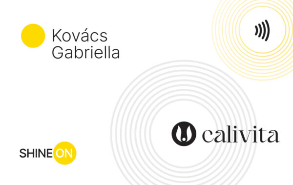NFC-n keresztül kommunikáló fizikai névjegykártya, amit úgy tudsz átadni a partnerednek, hogy csak hozzá kell érintened a telefonjához és Applikáció nélkül tudja menteni a névjegyadataidat a saját telefonjába iOS és Android telefonokon is.